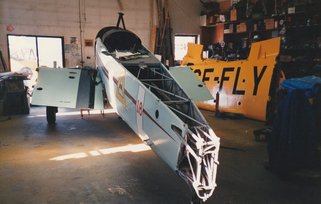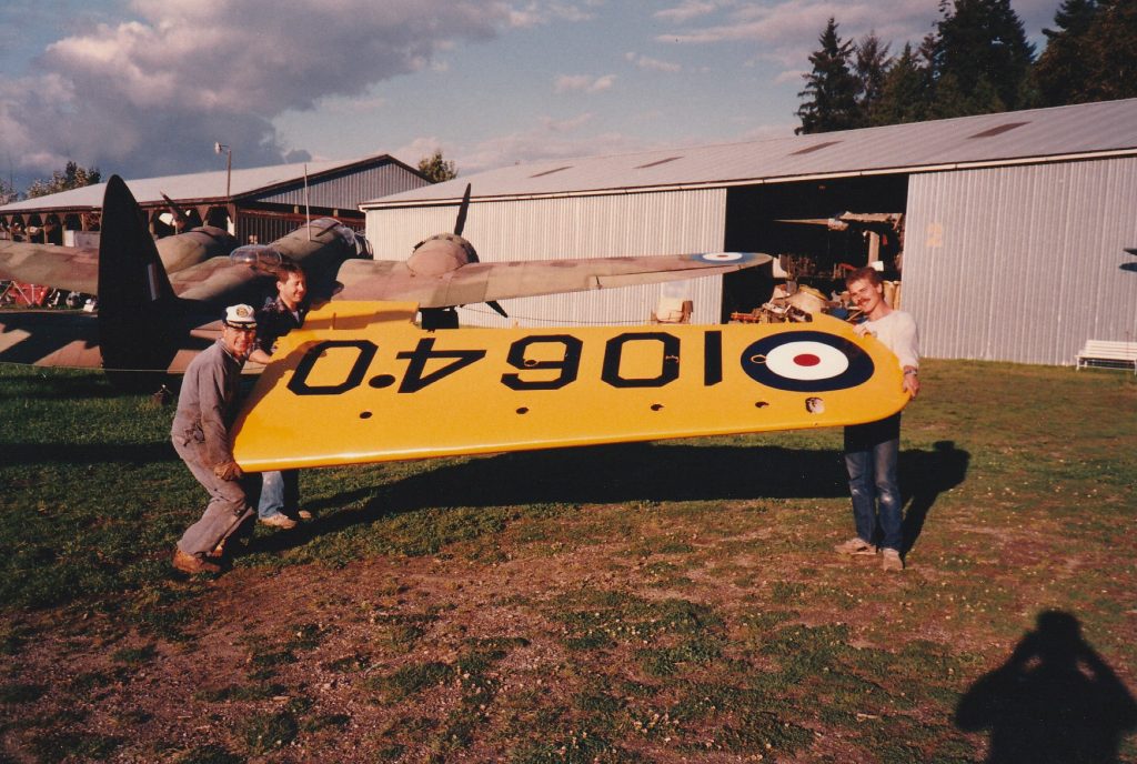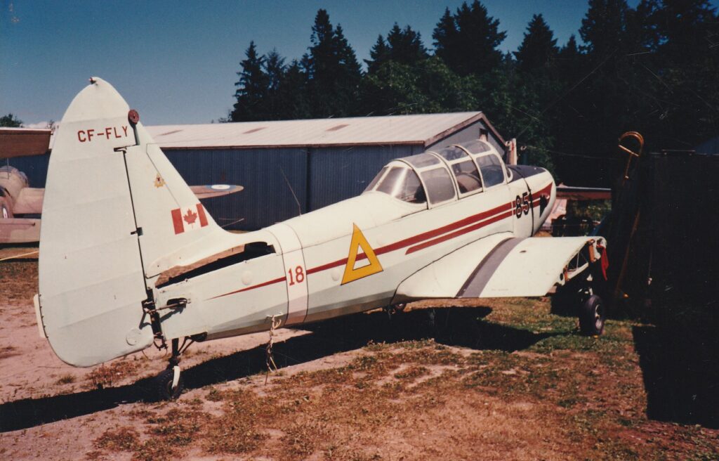 The Cornell was purchased from War Assets by W. Lannon and L. Wallace of Richmond, BC, registered as CF-FLY, and was based at Delta Heritage Air Park. While in civilian use the Cornell was stripped of its BCATP yellow paint scheme and painted in baby blue with big triangles painted on both sides of its rear fuselage, where a military roundel would normal be placed. The triangle symbol was a common feature amongst the airplanes owned by members of the Delta Air Park pilot community. You can still see a similar triangle on our museum’s SE5a replica, as it too was based at Delta Air Park around the same time. The Cornell graced the skies over the Fraser Valley from the early 1950’s up until the 1980’s when it was taken out of service for an engine overhaul.