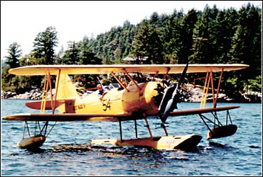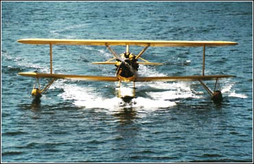 In temporary sheds near his house above Garden Bay, 4402 was completely rebuilt. The single raised and enclosed cockpit fitted for cropdusting was replaced by the original twin open cockpits, and the smaller engine was reinstalled. It proved impossible to find a correct 9ft diameter ground adjustable propeller, so an 8ft 6in unit was used, without affecting performance. A float replaced the wheels, of course.