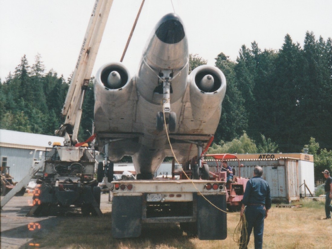 18138 was struck off RCAF strength in May of 1963, and it made its way to the Pacific Vocational School in Burnaby, BC. Upon acquisition the wings and rear fuselage of the jet were sold for scrap. Later the Canuck was moved to their campus at Vancouver International Airport and then the school changed their name to the British Columbia Institute of Technology (BCIT). The CF-100 was used as a training aid for aircraft maintenance students. With their instructors showing them how, these students kept the big fighter in running condition while at the school and they used it for engine run-ups.