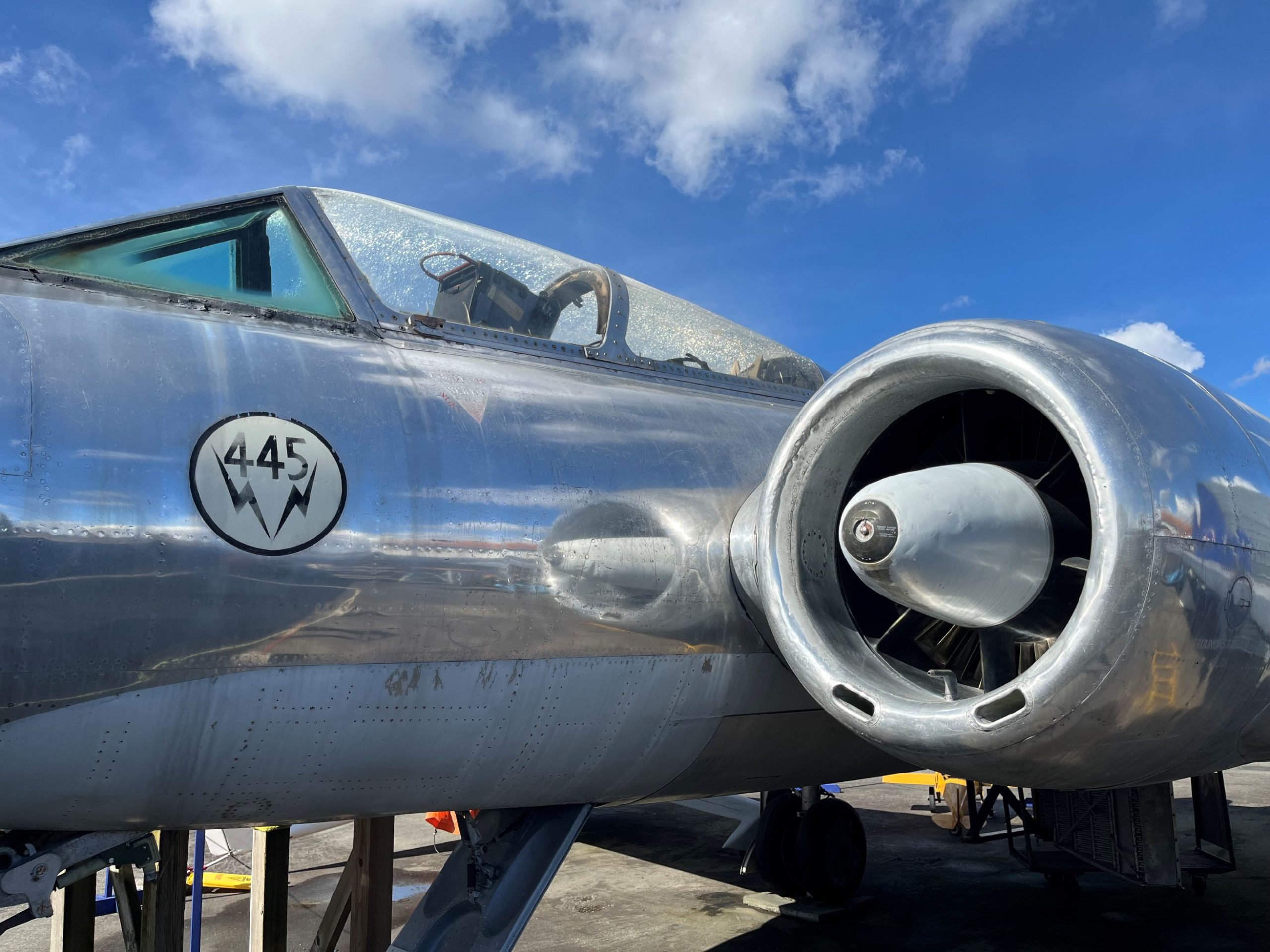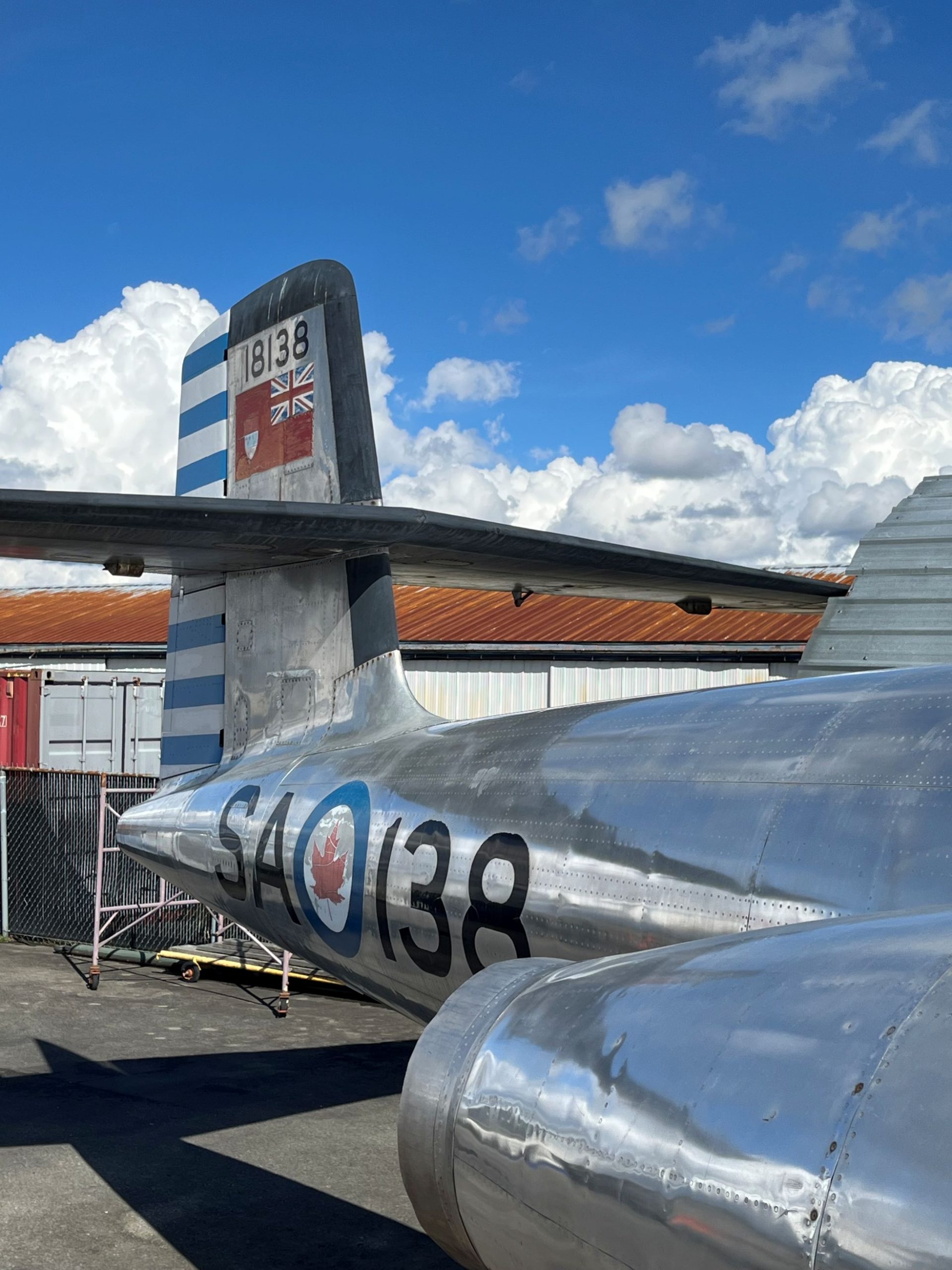 Prior to donating RCAF 18138 to the Canadian Museum of Flight in 1987, BCIT acquired a set of replacement Canuck Mk 5C wings, a new tail section, as well as a set of wing tip tanks. The wings and tail section came from Canuck RCAF 18766, while the tip tanks came from Canuck RCAF 18791 and were all purchased through Crown Assets Distribution Centre. When it arrived at the Canadian Museum of Flight’s Surrey homesite it was reassembled and put on outdoor public display. Interestingly, it wasn’t until Canuck RCAF 18138 arrived at the Canadian Museum of Flight, that it was discovered that the ejection seats never had their explosive charges removed. This mean that the whole time that the airplane was used for engine runs, had a student unintentionally pulled the ejection handle, they could have been propelled out of the cockpit. Upon discovery, the CMF team removed the explosive charges.