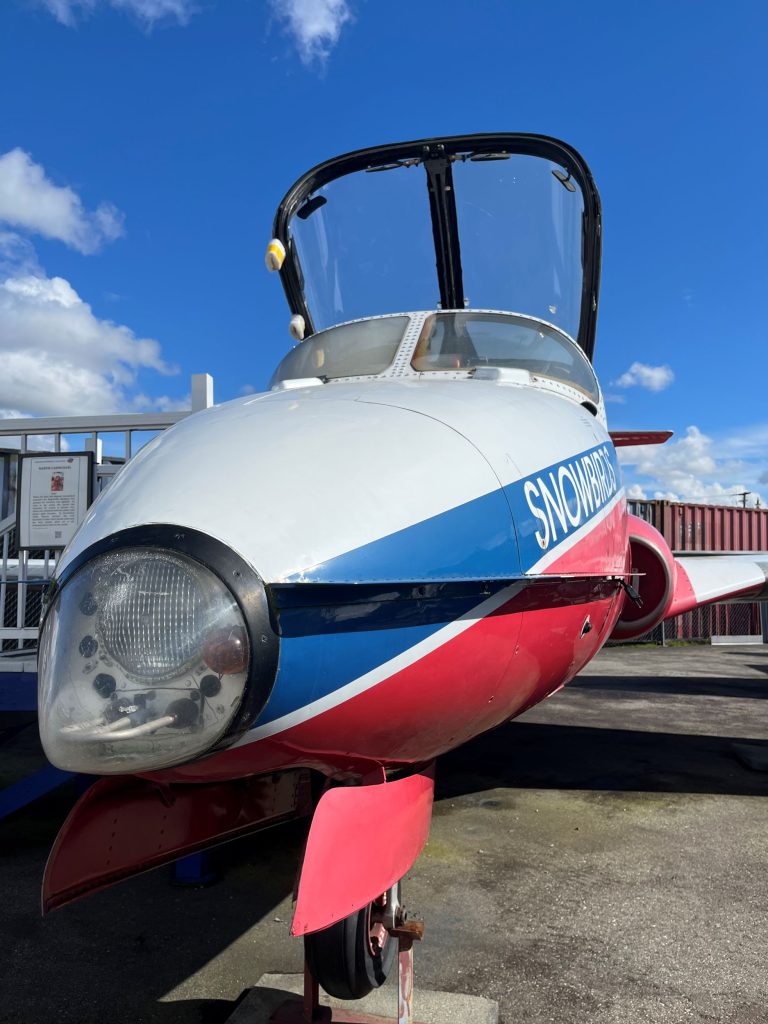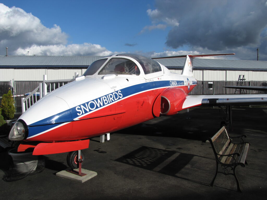 Our Canadair CT-114 Tutor was acquired in 2005 and transported from Mountainview, Ontario to Langley, British Columbia with the help of museum volunteers. The Tutor was then painted as Snowbird 8 through the generous support of Dave Christian and his staff at AERO-TECH Graphics who donated their time, paint supplies, and expertise. It was then lifted into the museum’s display courtyard by Dick Boulter and Bear Crane Services Ltd.